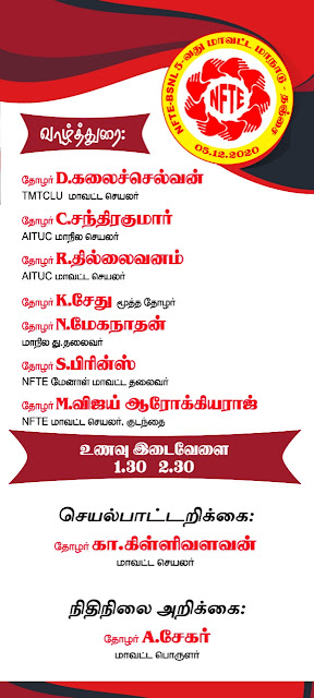 தஞ்சை மாவட்டத்தில் உள்ள முன்னாள் கிளைச் செயலர்கள், V R S ல் சென்ற தோழர்கள் அனைவரும் தவறாது மாநாட்டில் பங்கேற்க அன்போடு வேண்டுகிறேன்.